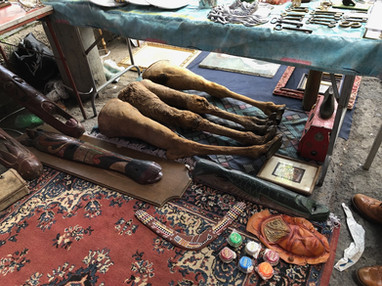 One of my highlights in Mexico City was visiting the Sunday Antiques Market at La Lagunilla. We understand that there is always some degree of market going on around here, but Sunday between 9:00 and about 3:00 is the main event. You can find pretty much anything here, and it does - as others have remarked - seem to go on forever. We all wished that we could have carried home some furniture. I settled for a great hat and a tapestry.